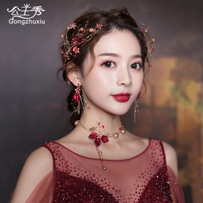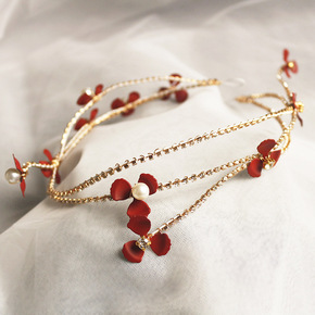 新款新娘红色头饰发带发箍日韩式简约超仙敬酒服晚礼服...