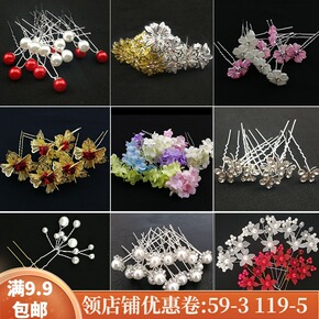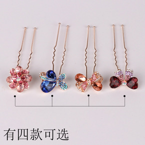 韩国水钻盘发插针发饰小簪子简约头饰发插 U型夹新娘...