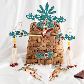 秀禾头饰中式新娘手工造液花古装流苏花朵发饰古典龙凤...