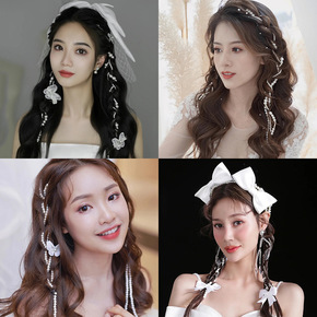 时尚婚礼造型日韩新娘头饰编发珍珠发带仙气可爱网红发...