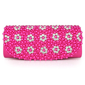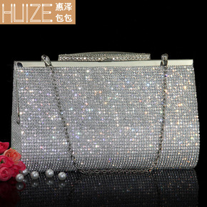 彩月F43女士手提包 韩版色丁褶皱晚宴包镶钻化妆包...