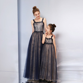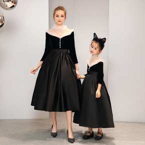 西装领大气亲子装春季儿童公主裙主持钢琴舞台演出服母...