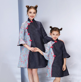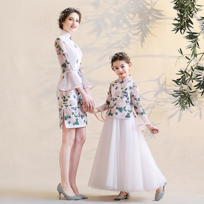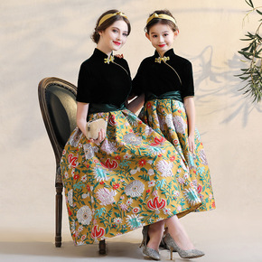 亲子装春儿童礼服晚礼服复古改良旗袍中式民族风春夏装...