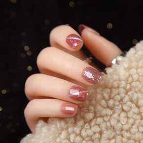 手工美甲指甲片穿戴甲指甲贴光疗甲短款新娘甲带晶石猫...