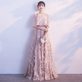 欧美晚礼服女2020新款宴会气质年会主持人派对吊带...