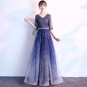 宴会晚礼服长款2022新款梦幻星空渐变主持人合唱演...
