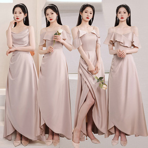 粉色缎面伴娘服2022新款姐妹团春季吊带小个子宴会...