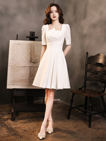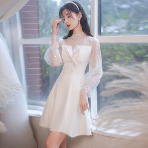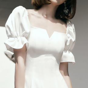 白色小众轻晚礼服裙女平时可穿法式领证订婚小白裙夏季...