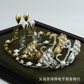 天鹅烘焙蛋糕装饰 新娘头饰天鹅珍珠造型手工发箍皇冠...