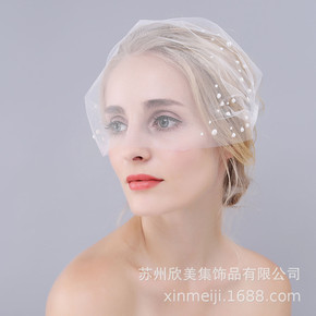 V012手工新娘面纱 软网手缝发梳欧美新娘短头纱 ...
