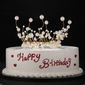 新娘饰品 唯美皇冠蛋糕装饰少女珍珠王冠烘培派对装扮...