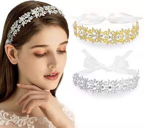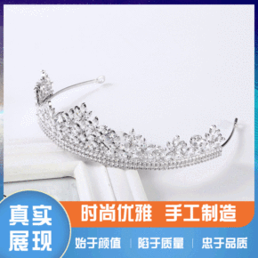 新款织带新娘皇冠 锌合金镶水钻女发箍 婚庆发饰配件...