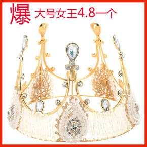 欧美复古王冠新娘皇冠结婚巴洛克女王金色大皇冠婚纱礼...
