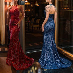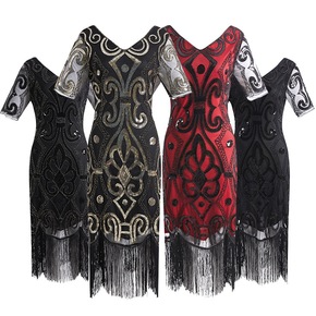 外贸精品实拍爆款1920复古流苏晚礼服亮片手工钉珠...