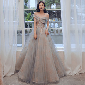 灰色伴娘服2022新款夏季气质姐妹团晚礼服裙女长款...