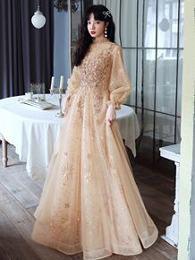 18308#宴会晚礼服女新款短款长袖洋装派对聚会长...