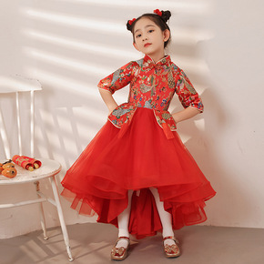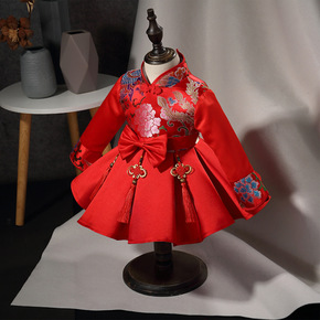 21年新款中国结儿童秋装汉服可爱网纱刺绣女童连衣裙...