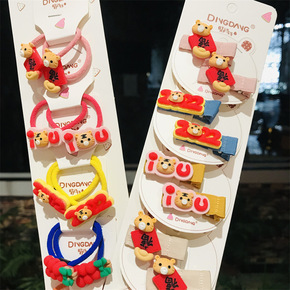 儿童发饰红色古风新年发夹汉服头饰中国风古装配饰女童...