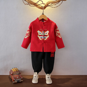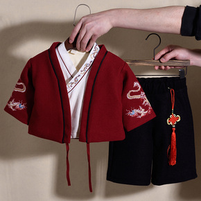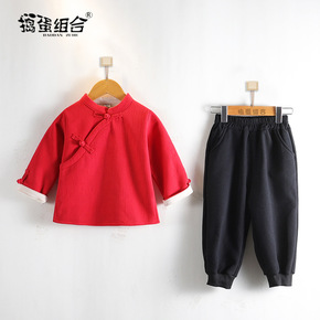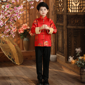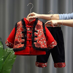 男童唐装汉服冬款拜年服宝宝周苏喜庆红色礼服套装儿童...