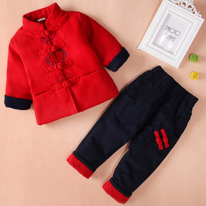 男童唐装冬季中国风宝宝拜年服婴儿三件套新年装儿童毛...