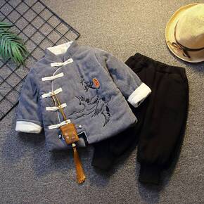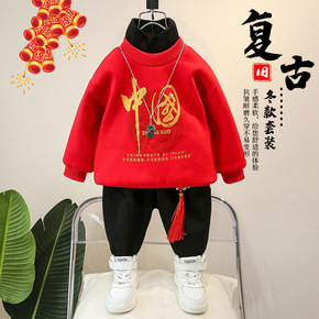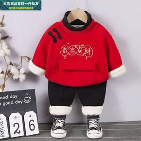 儿童装男童加绒套装冬装男宝宝唐装卫衣秋冬季小童拜年...