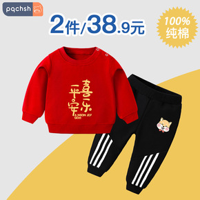 新年过年喜庆衣服女童唐装冬季款男童加厚新年装拜年服...