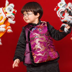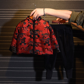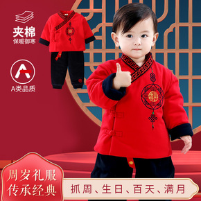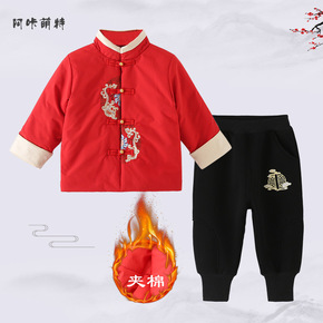 唐装男童儿童汉服中国风冬季加厚周岁礼服宝宝过年拜年...