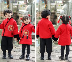 儿童元旦拜年服小童喜庆演出服男童过年汉服女童冬款中...