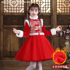 新年童装女童加绒连衣裙洋气红色冬装10岁生日公主裙...