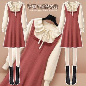 针织连衣裙女装秋冬季圣诞节穿搭拜过新年红色衣服包臀...