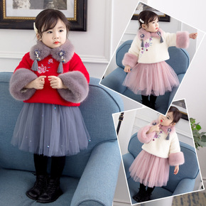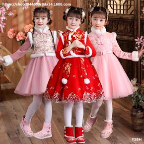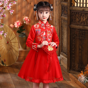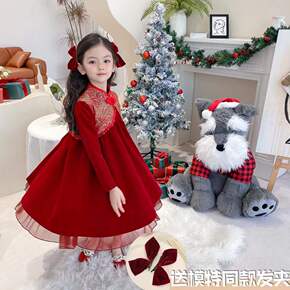汉服女童连衣裙儿童过年服裙子拜年服红色公主裙中国风...