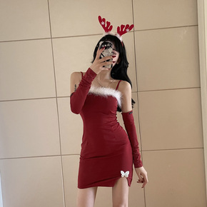 氛围感连衣裙又甜又辣性感纯欲吊带裙夜总店新年过年红...