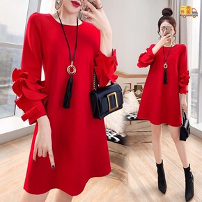 红裙子小礼服本命年大码女装时尚2022新款秋装新年...