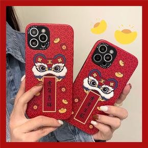 适用iPhone13新年手机壳磁吸中国醒狮苹果12...