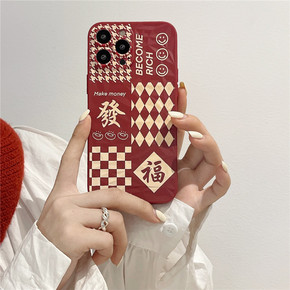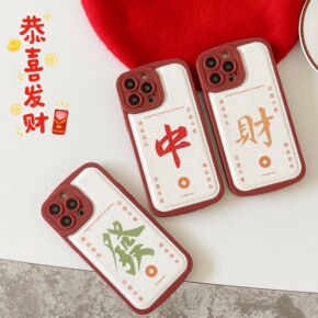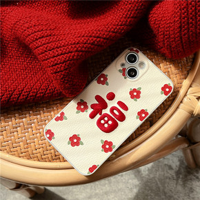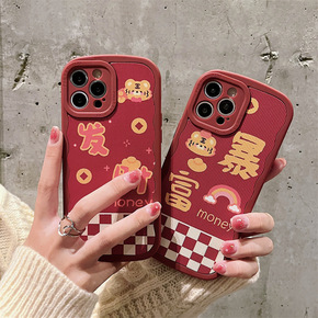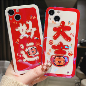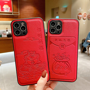 新年红情侣手机壳适用iPhone13PROMAX喜...