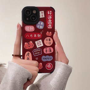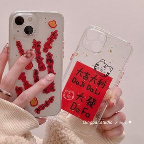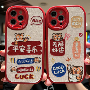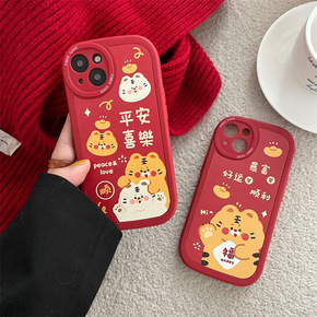 心想事成老虎2022虎年过年新年款红色13手机壳液...