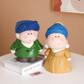 月半艺术家存钱罐戴珍珠耳环少女摆件儿童硬币储蓄罐创...