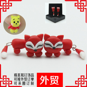 新年亚克力植绒少女法式立体可爱爱心 DIY耳环耳饰...