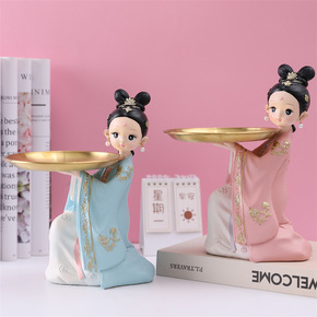 创意新款坐姿格格唐仕女托盘收纳家居便捷实用书桌卧室...