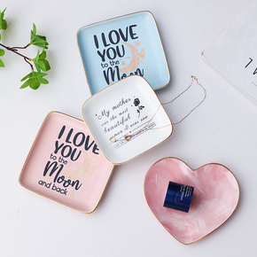 月亮首饰盘梳妆台收纳盘卫浴摆件戒指托盘北欧陶瓷首饰...