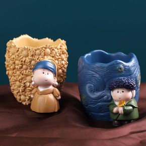 大艺术家系列戴珍珠耳环的少女摆件笔筒学生文具桌面客...