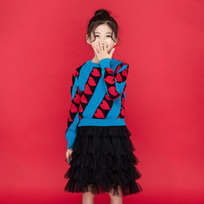 女童高领毛衣秋冬2021新款韩版加绒红色加厚圣诞新...