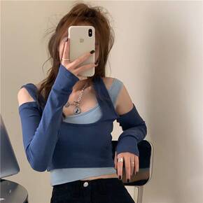 过年红色毛衣爵士露肩跳舞蹈女装叠穿辣妹衣服设计感露...