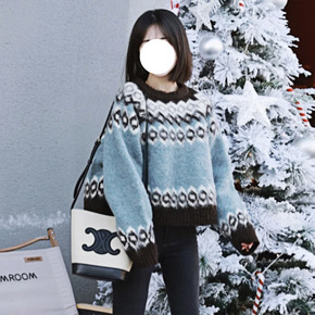 孕妇装秋冬装套装中长款毛衣时尚格花宽松打底上衣春秋...