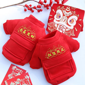 狗狗衣服红色喜庆新年猫咪毛衣醒狮过年宠物潮牌法斗柯...