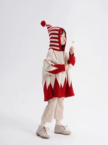 新年圣诞红色提花斗篷尖尖帽针织毛衣斗篷...