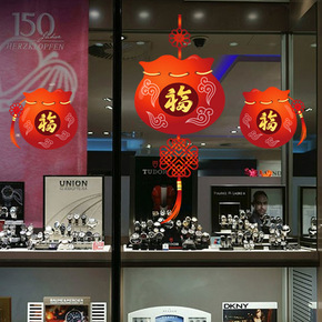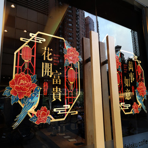 川豪新年春节家用室内墙面装饰阳台玻璃移门商场橱窗玻...