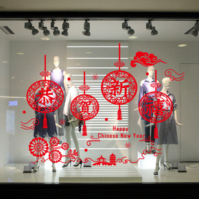 XH3210仲兰新年春节元旦橱窗玻璃门店铺装饰大红...