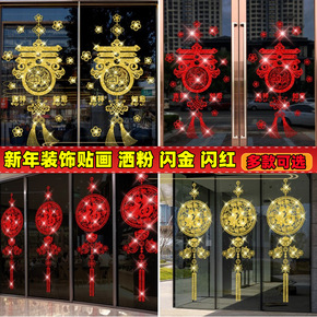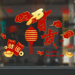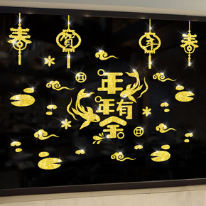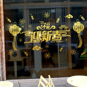 新年春节玻璃贴金粉烫金色墙贴画商场店铺酒店布置年年...