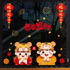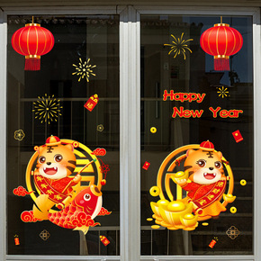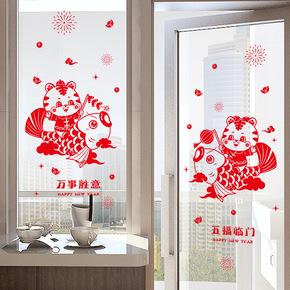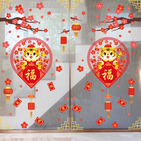 2022虎年元旦新年装饰纸春节橱窗玻璃门贴画过年布...